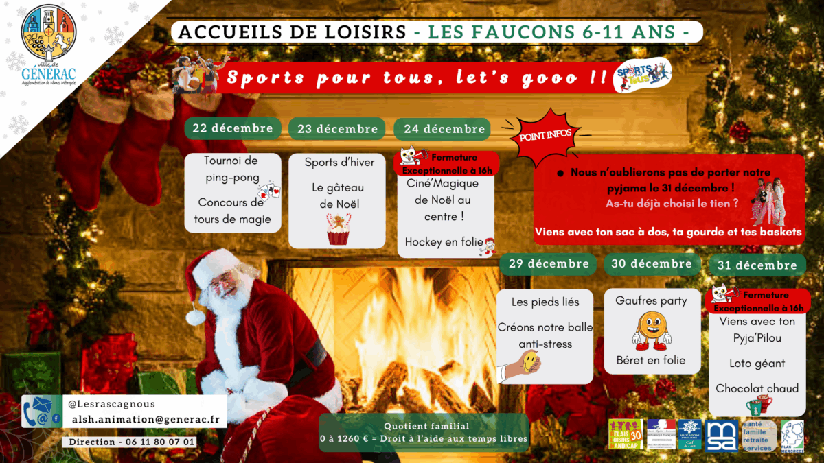 Calendrier d’ouverture et de fermeture du Centre de Loisirs